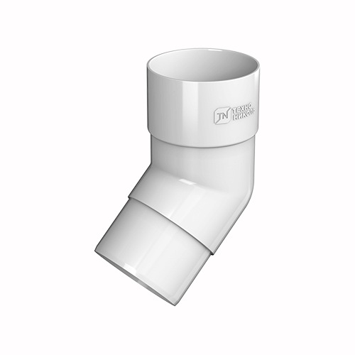 Колено с углом 135° предназначено для изменения направления водосточной трубы, например, обход карнизов. С трубой и воронкой соединятся по принципу раструба.